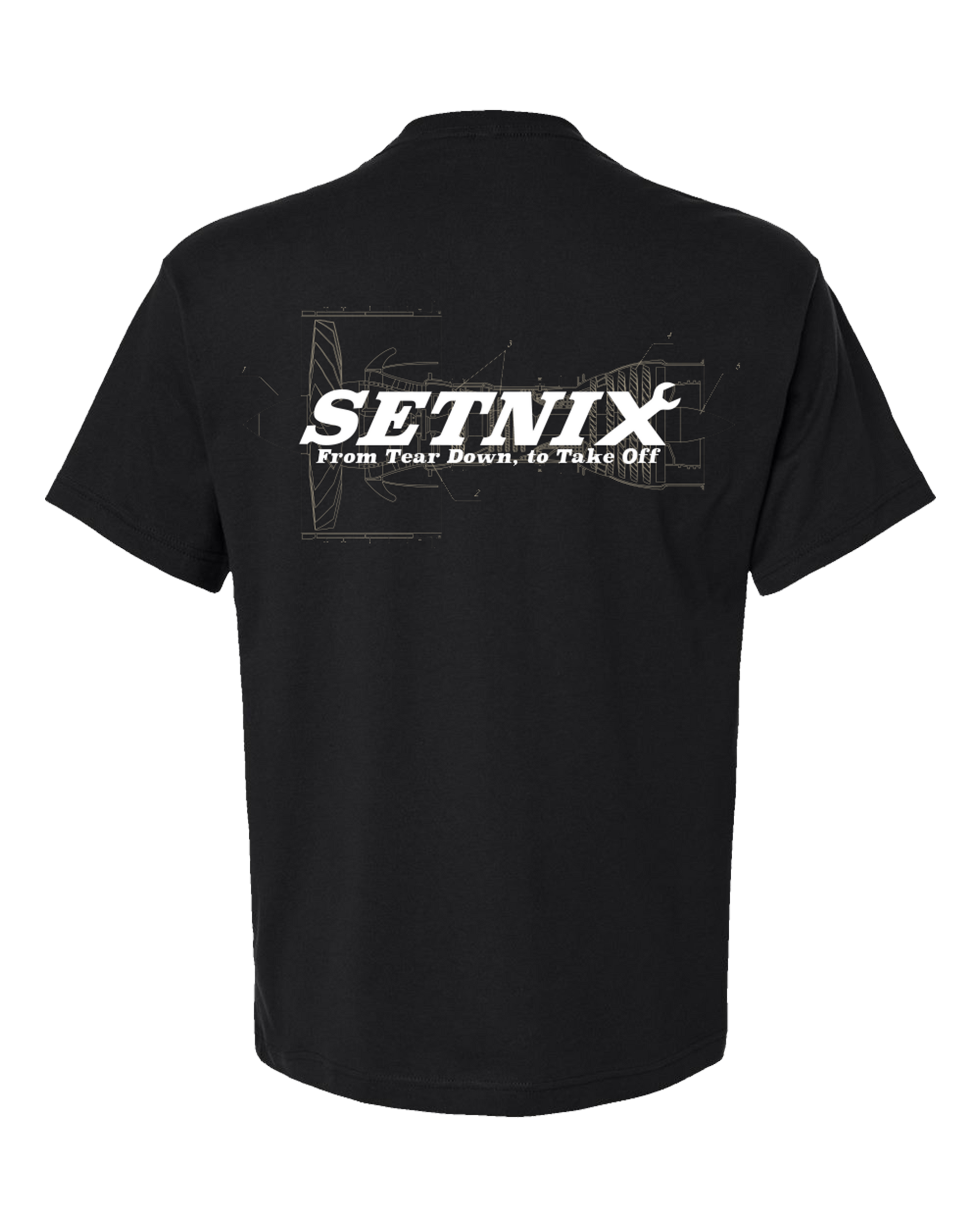 Relaxed fit t-shirt with Setnix 'Tear Down to Take Off' screen print. Made from a heavyweight, 6oz fabric (90% airlume combed and ring-spun cotton, 10% polyester). Pre-shrunk to minimize shrinkage. Features drop shoulder, double-needle stitched neck, side seams, tear-out label.
